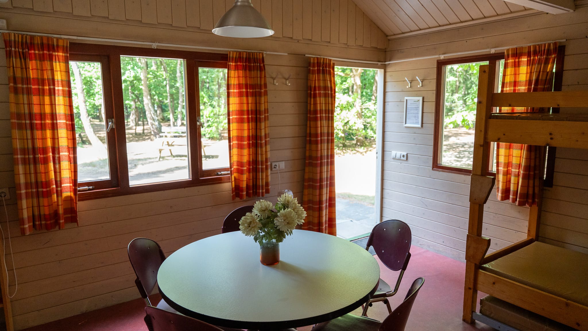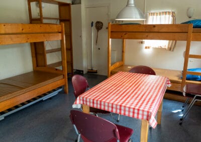 - 2 stapelbedden met matrassen en kussens (4 slaapplaatsen) met de mogelijkheid om 1 bed erbij te zetten.