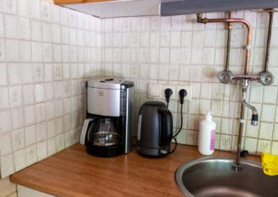 - Compleet keukenblok met 4-pits kooktoestel, koelkast en warm & koud stromend water